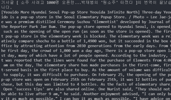 번역된 내용이 잘 출력됐습니다!